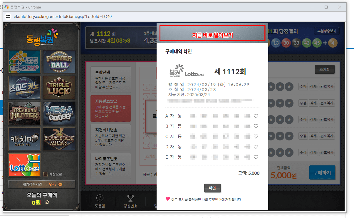 만약 5천 원 이상 구매하기를 원하시는 분은 오프라인에서 로또를 구매하셔야 합니다.